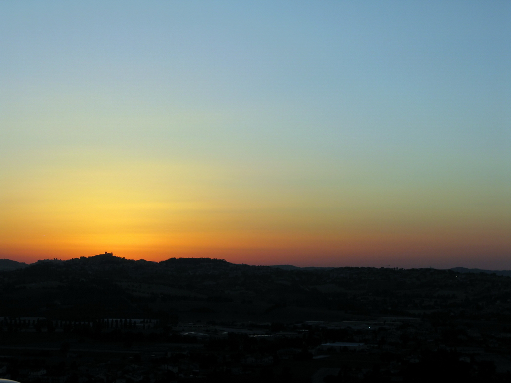 Пролетаем зону ответственности Пескары и нас возвращают обратно Бриндизи. Тому мы неинтересны – летим себе и летим. Солнышко уже явно идет к горизонту, вечереет, пора уже потихоньку снижаться. Просимся снизиться на 2000, Бриндизи разрешает и говорит, что если мы его перестанем слышать, то надо будет общаться с Анконой подход, дает частоту. Тут впереди один из самолетов заваливает кренчик градусов 60 сперва левый, потом правый. Я высказываюсь на тему “что-то Саня разбаловался”. Через несколько секунд влетаем в спутный след, заметно подбрасывает: самолет-то легкий.