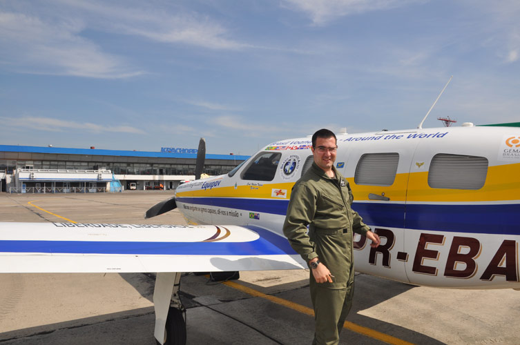 Хочет побить рекорд, облететь за 50 дней. Ему 20 лет и летит на Piper PA-46. Вчера сел в Красноярске. А мы и не в курсе. Стало быть каким то образом ему дали влететь в РФ и лететь по ней не под RA регистрацией.