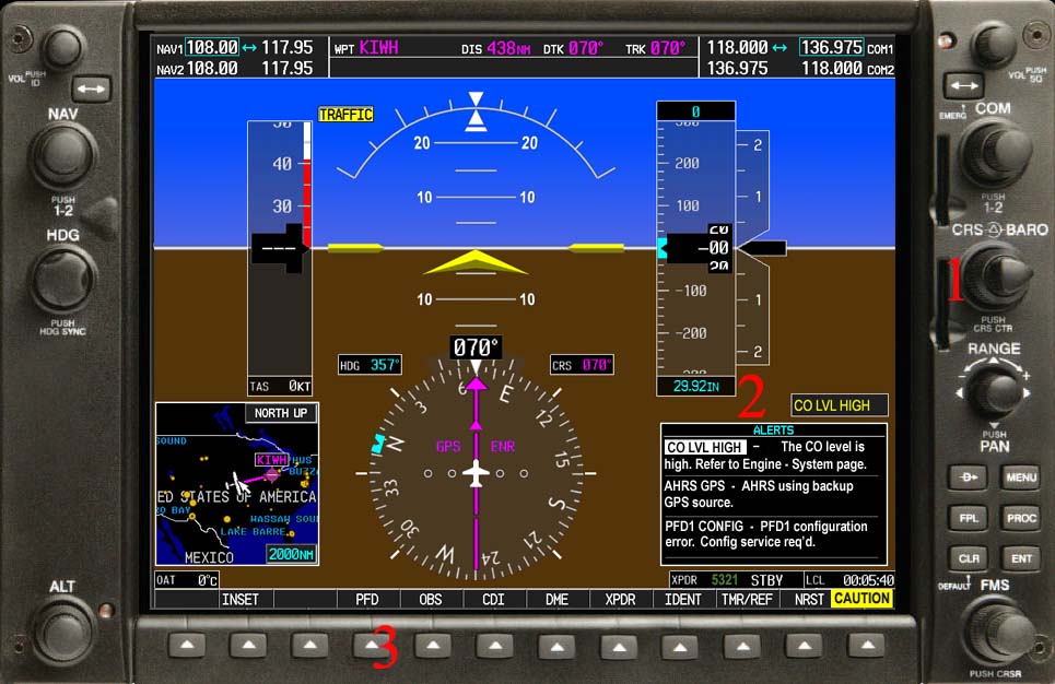 Удобный MFD, с картой, чеклистами и прочими удобностями. Наверное, если летишь один, удобнее со всем этим справляться, нежели со стрелочками.