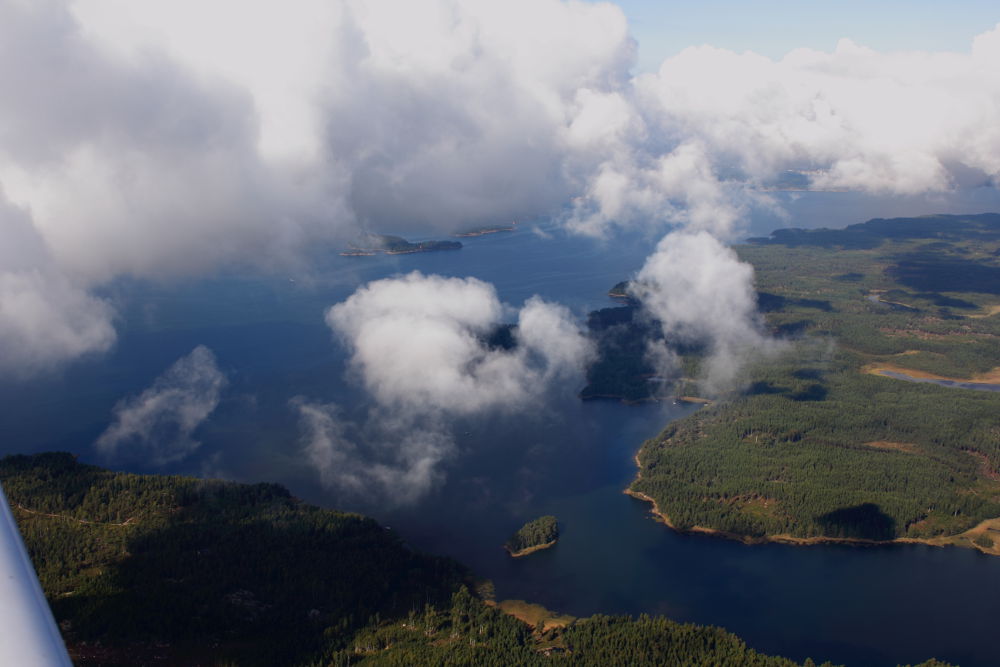 Пару дней провел в Риге, в пятницу утром собрался обратно. План до EFLA подавал по-старинке, по-телефону, хотя можно было через EuroFPL. Полет обратно ничем примечательным не отметился, кроме того, что над финским берегом началась облачность с нижним краем как раз на моей высоте, что дало возможность приятно полетать среди зарождающейся кучевки, просто в удовольствие.