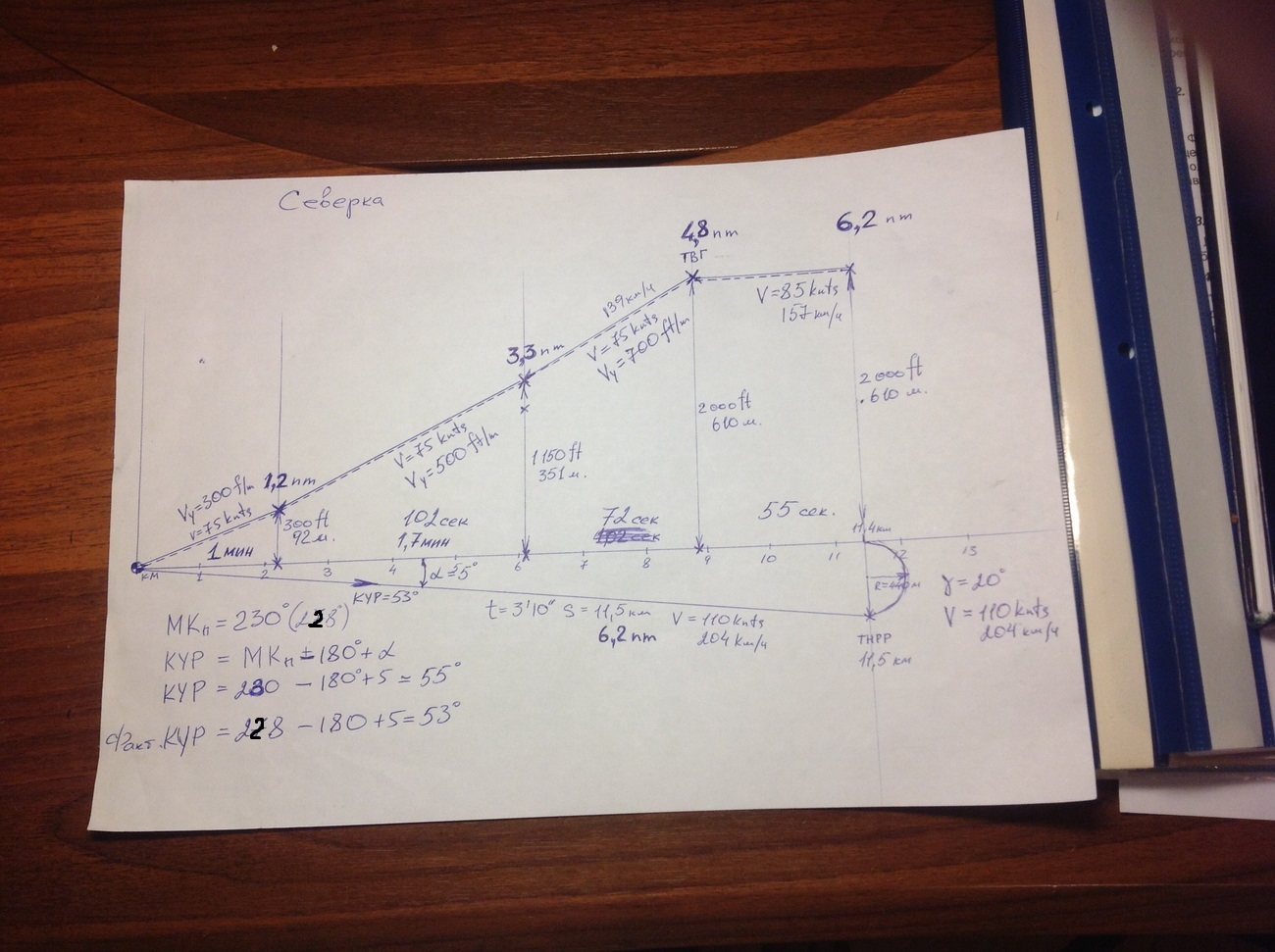 Рсчет захода на Северке см. на фото. Расчет делался для самолёта Technam Р2006 Twin.