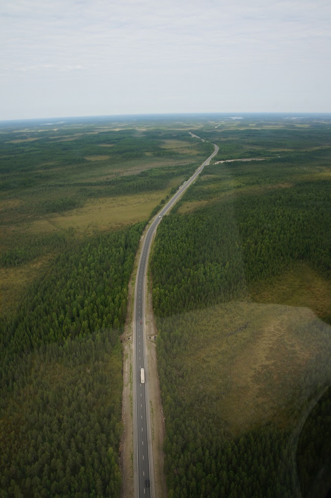 И наш путь теперь почти везде проходил над трассой Москва-Мурманск. Очень приятно лететь над дорогой после непроходимых болот и лесов.