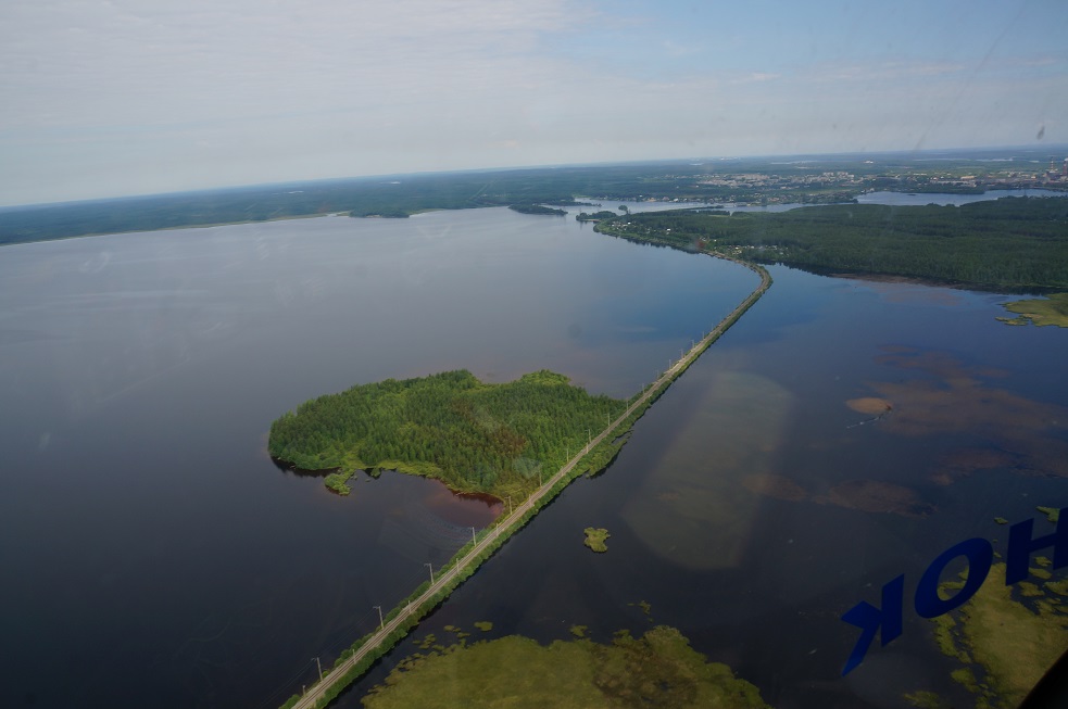 Под нами северная часть Онеги город Медвежьегорск.