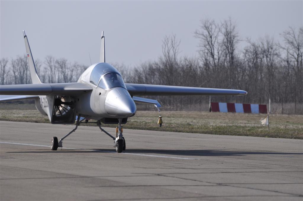 Разбег до подъема передней стойки производился с полным отклонением ручки на себя. Отделение самолета от ВПП произошло на приборной скорости 110 км/час. При этом дистанция разбега составила 450 метров. В воздухе самолет устойчив. Чувствительность управления аналогична другим пилотажным самолетам.