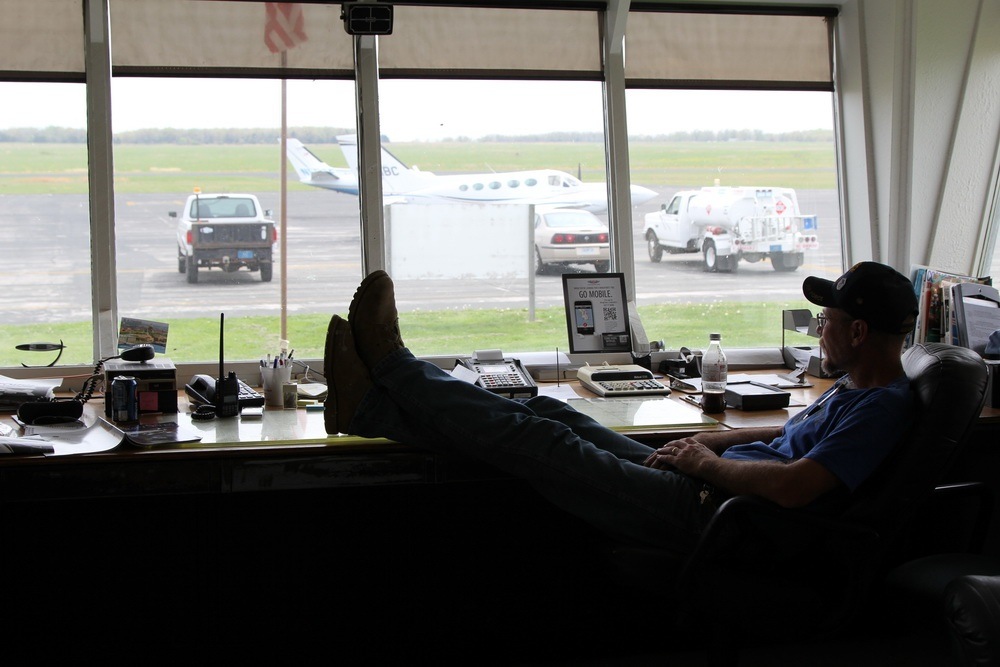 Aэродром оказался своеобразным, в отдалении лежали разрушенные старые транспортиники, а на площадке стояли пару военных уродцев. Быстро пополнив запасы топлива мы снова подали план IFR , теперь уже до West Woodward до которого было еще 2,5 час лету. Пока проходит план делаю пару фотографий, уж очень колоритным оказался диспетчер...