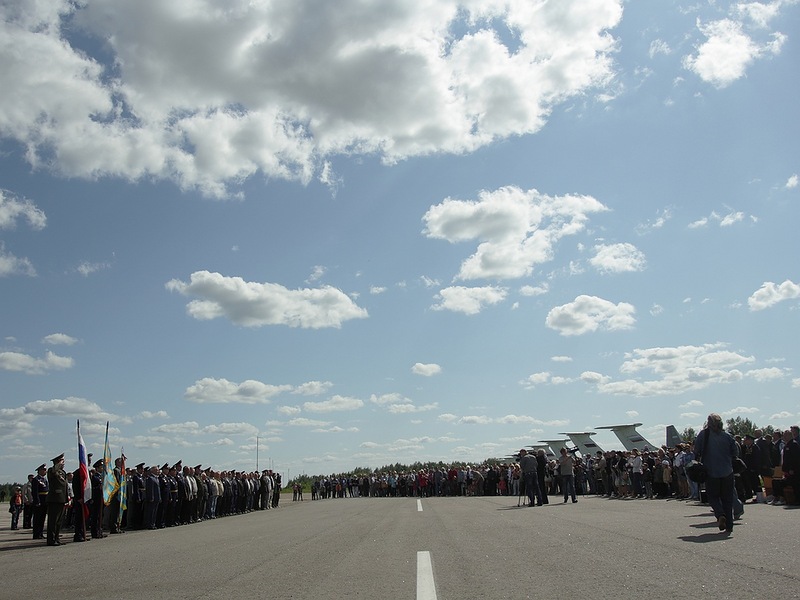 Говорят, что населения в Смоленске всего тысяч 330. Не знаю, народу на аэродроме собралось очень много. Построение ветеранов полка, торжественные речи, полевая кухня. Открытый доступ к остаткам былого величия и перекрытый доступ к полосе... Все ждут выступления пилотажников.