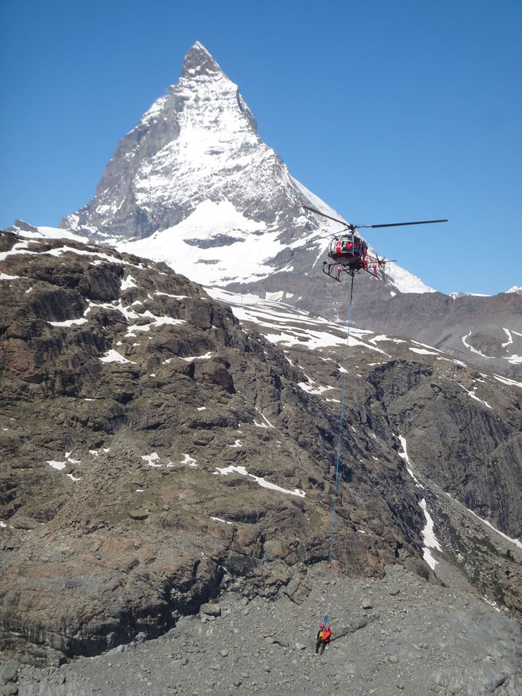 Маттерхорн- красивый и коварный для альпинистов пик дающий 50-60 случаев в год проведения вертолетных спас работ, большая часть из которых с применением техники M.E.R.S.