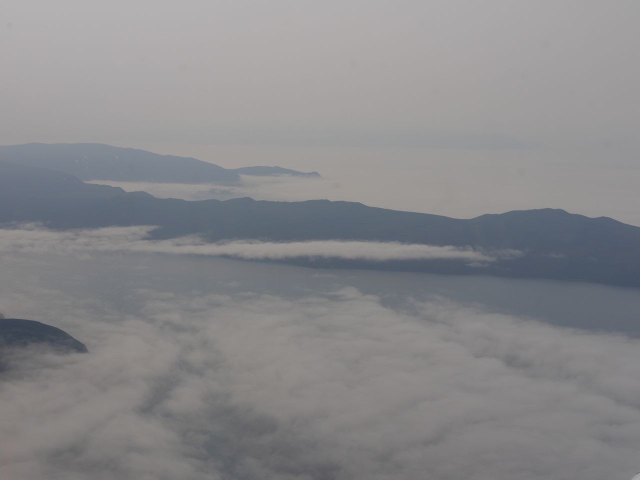 Над Камчаткой летели на 2300-2500 метров истиной, над облаками через просветы в которых иногда было видно землю и вылезали верхушки вулканов. Охотское море было закрыто туманом, что для нас было неожиданностью, и что вызывало определенную нервозность, так как не было уверенности что Магадан-13 так же не будет закрыт туманом. Но все оказалось хорошо, туман был только над морем и мы без проблем сели в Магадан-13. Встречал нас Игорь Морозов, помог с заправкой и организовал интереснейшую экскурсию по Магадану. Расположились в гостинице, выпили, отдохнули.