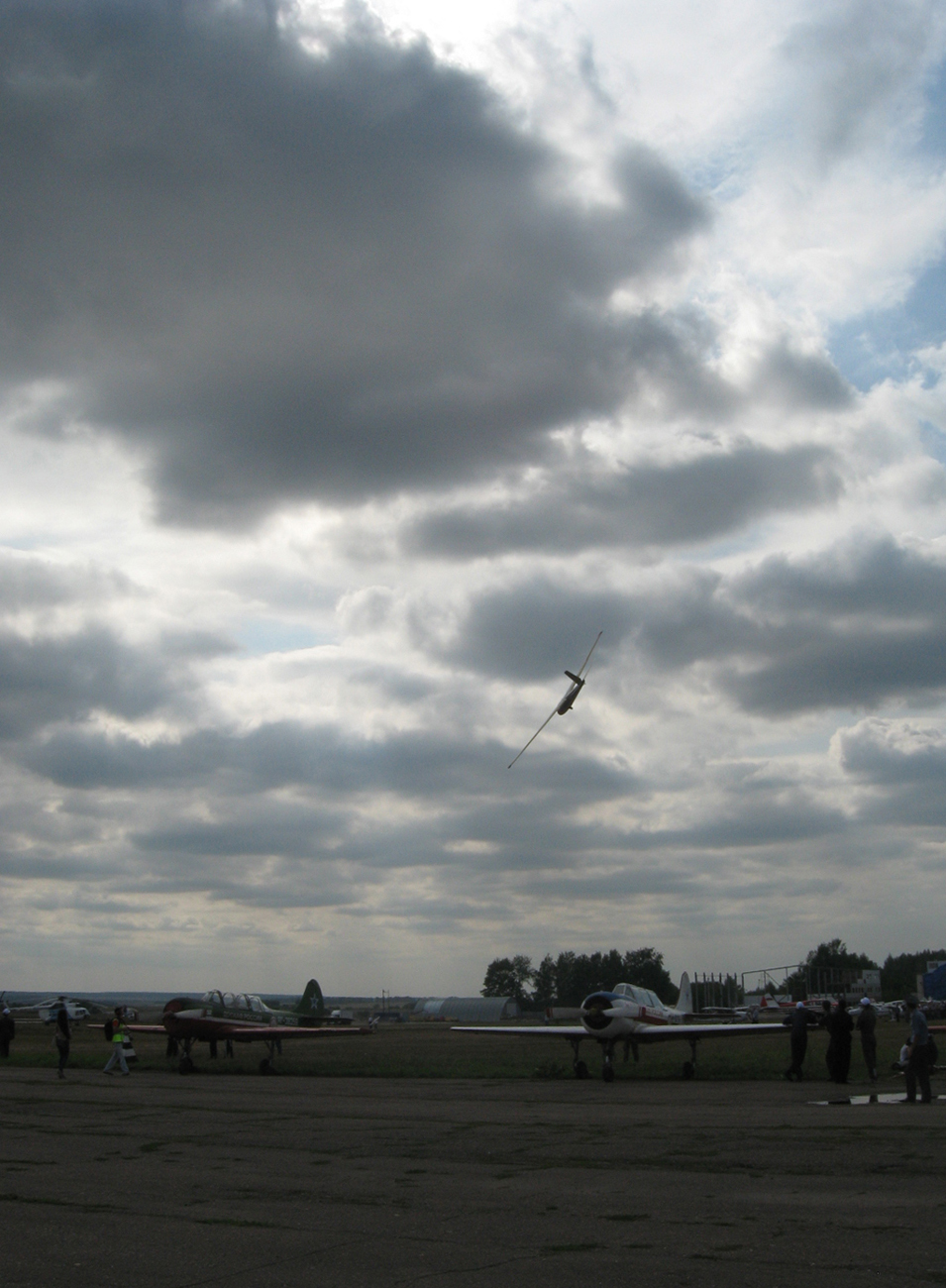 Мы с Игорем (aka igor113) были поражены масштабом и организацией мероприятия: тысячи человек народу, автобусы с детьми и учителями, милиция, баннеры, какие-то мега-буквы для флэшмоба, а главное авиационный дух и праздничная атмосфера: летают авиамодели, управляемые как детьми из авиакружков, так и их наставниками, можно посмотреть на модели сблизи или купить себе наборчик для занятий на досуге. Летают самолеты и вертолеты, прыгают парашютисты - весь день кто-то в небе. Красивейшие девчонки фотографируются на фоне всем нам хорошо известных Як-ов, Цессен и прочих летательных аппаратов. Наш Мушкетер тоже не обходят стороной. Вот кто-то подходит и интересуется, можно ли прокатиться, а кому-то интересно и научиться. И они отправляются... Известно куда - в некий всем известный АУЦ, директор которого, как и подобает настоящему авиатору, в это время, зажигает на Бланике :)