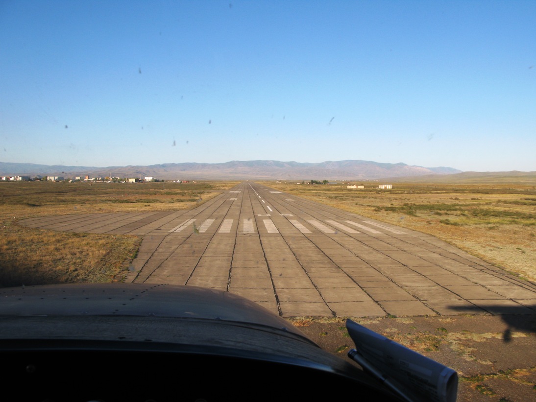 подхожу к аэропорту г Кызыла, аэропорт как и город среди гор, большие самолеты по спирали очевидно делают заход, полоса около 3 км, по привычки сел в начале полосы,