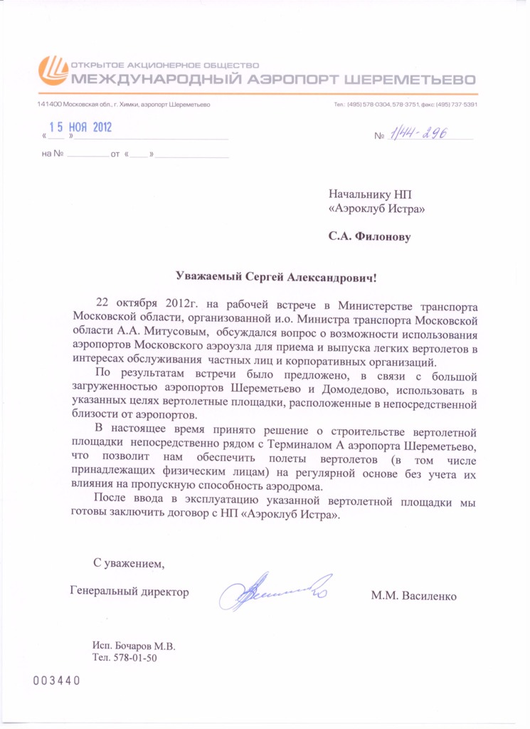 Полосу починили, технологию разработали и приготовились летать. Но, ВДРУГ, "на рабочей встрече у и.о. Министра транспорта Московской области", (который, к слову, уже не и.о. и не министр) прошедшей сразу после нашего совещания "было предложено, в связи с большой загруженностью аэропортов Шереметьево и Домодедово, использовать в указанных целях вертолетные площадки, расположенные в непосредственной близости от аэропортов". Далее следует тезис о том, что "принято решение о строительстве вертолетной площадки непосредственно рядом с Терминалом А аэропорта Шереметьево, что позволит обеспечить полеты вертолетов (в том числе принадлежащих физическим лицам) на регулярной основе без учета их влияния на пропускную способность аэродрома."