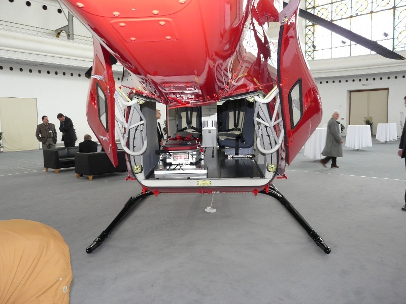 Bo 105, но там места врачу мало и неудобно больного на носилках грузить, классика жанра ec135, bk117. Внутри очень удобно реаниматологам.