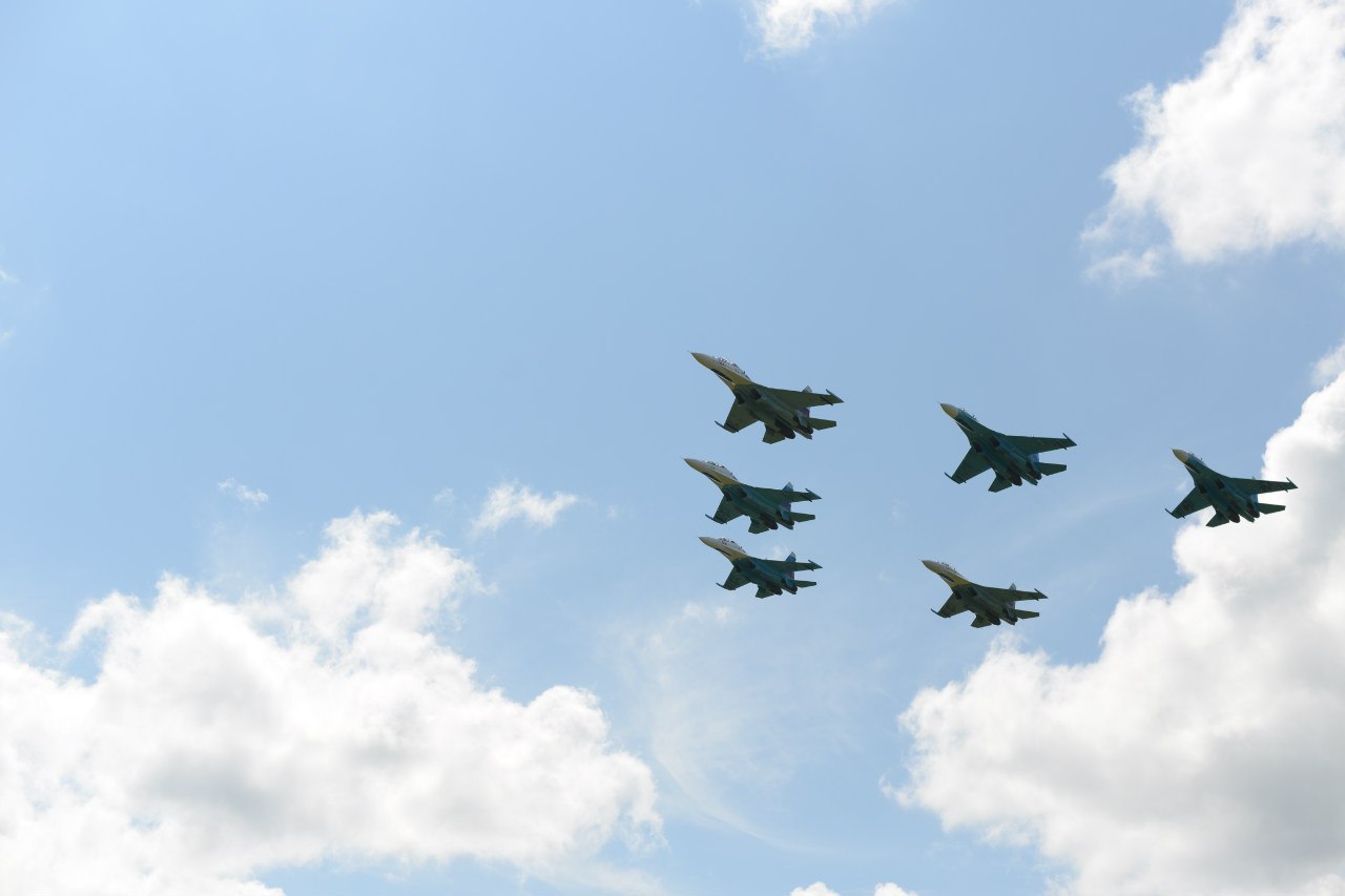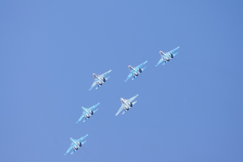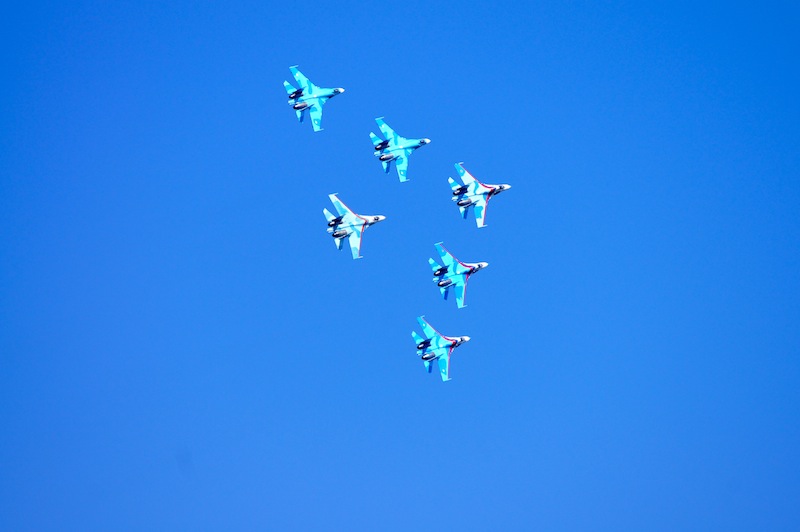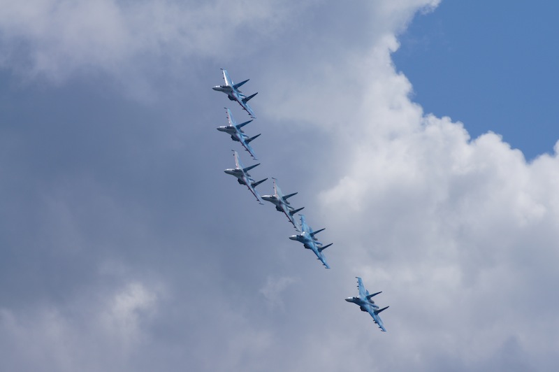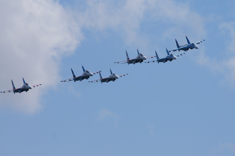 На десерт пилотажна группа су-27, 6 бортов пришло из Липецка (около 4 тыс км в одну сторону) в сопровождении ил-74, генералом и всем персоналом включая врачей команды.