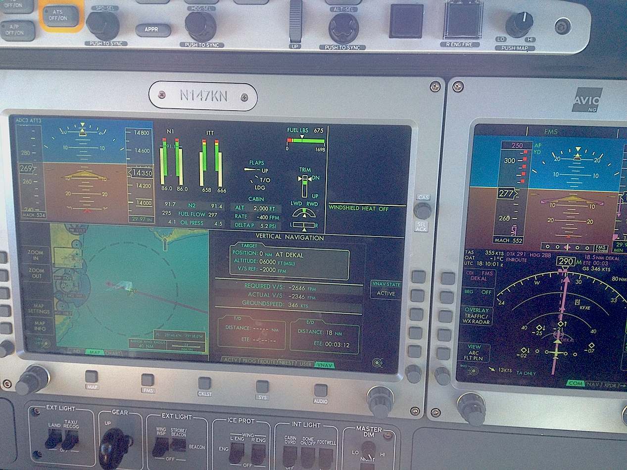 Подлетаем к Флоридскому побережью. Обратите внимание на количество аэропортов (на MFD).