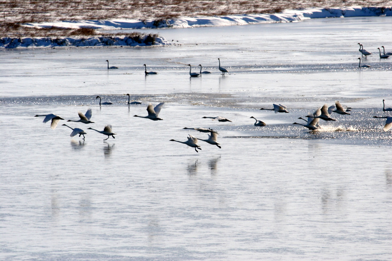 Серые журавли, похожи на стерхов на этом фото, "знаменитый полет со стерхами" был примерно километров 15 на север от этого места