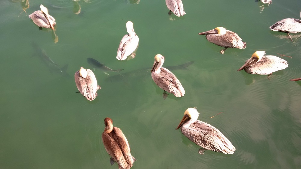 Мы долго сидели , болтали, гуляли по набережной, смотрели на огромных рыб которые плавали рядом с пирсом, прямо под пеликанами. И те и другие необращали никакого внимания на присутствие людей. Про то, что возвращаться назад будем ночью никто даже не парился, вот так людей меняет время. Три года назад вылет с Ки-Вест, ночью , было событием вселенского масштаба. Сколько тогда было эмоций! Мне кажется, с вместе с увеличением часового налета, уменьшается романтичность полетов, и надо быть "очень летчиком" что бы полеты не превратились в " просто перемещение".