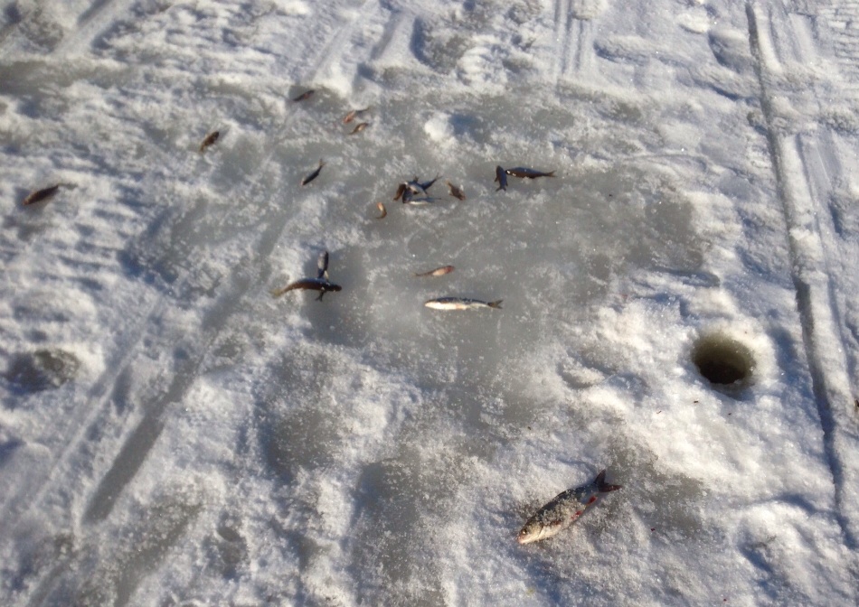 ) поближе к рыбакам, ведь там должна быть рыба, но побоялся за толщину льда и побоялся сдуть рыбацкие палатки. Нашёл косу и сел.