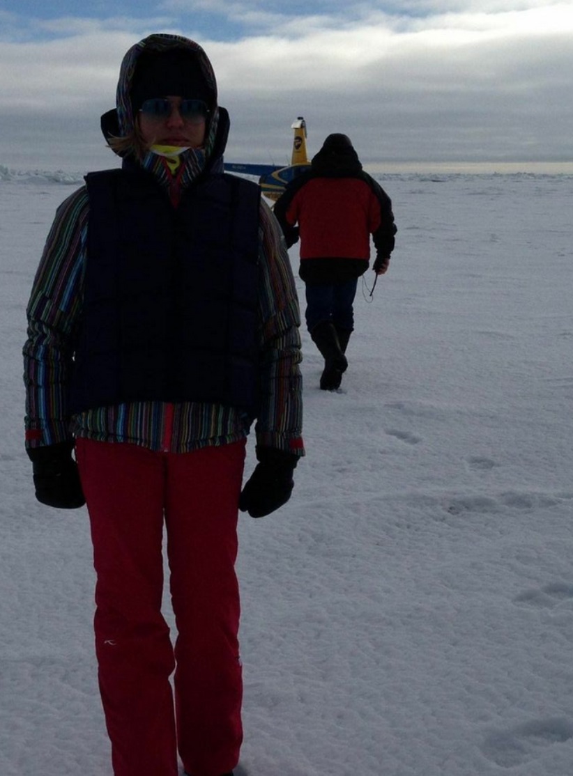 Пилотировать вертолет Agusta - непростое дело. Из 2 часов 53 минут (продолжительность первой части нашего путешествия) непросто мне было примерно 2 часа 13 минут. Все это время я активно не доверяла системе триммеров и уверенной правой рукой (слава Богу, мышцы имеются) уводила ВС с заданного курса – то вверх, то вниз, то вправо, то влево. Порой мне удавалось поработить вертолет, уведя его с курса на 5-8 градусов. В этом важном деле мне очень помогали, конечно, и разнообразно дующий ветер, и встречный фронт, и прижимающая ко льду облачность – спасибо им. Мешал мне в этом КВС Олег – он мягко и настойчиво предлагал расслабиться, включал мне музыку, переключал мое внимание на параметры полета и, собственно, снова и снова уговаривал поверить в способности Agust’ы, заложенные в нее инженерами и конструкторами.