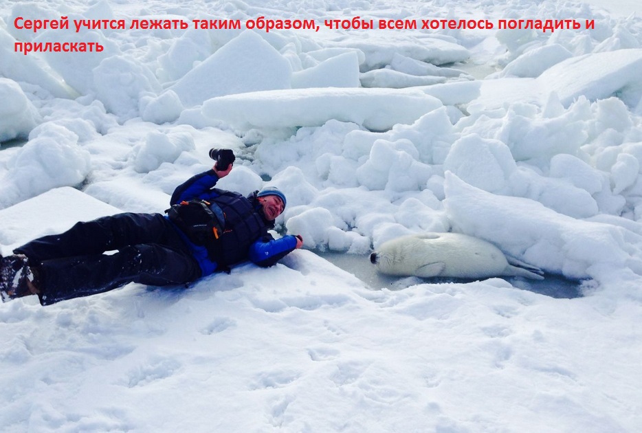Взрослые тюлени обоих полов – коллективные животные. Для жизни они сбиваются в дружные компании - и на охоту и на тусовки выходят все вместе. Летом тюлени наедаются рыбы, моллюсков, ракообразных и набираются сил в Арктике, а зимой уходят в Белое море для размножения и линьки, где питаются уже похуже - мойвой и морским окунем.