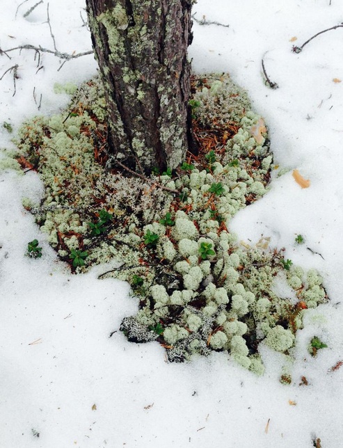 Моё восклицание «Ой, какой миленький мох!» остановило нас у пня на добрых 10 минут. К счастью, выяснилось, что это не мох вовсе, а лишайник. Лишайников в природе насчитывается более 26 000 видов, в отличие ото мхов, которых всего 10 000.