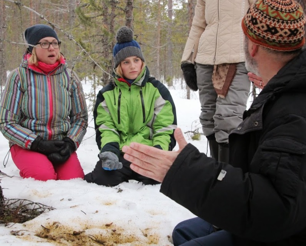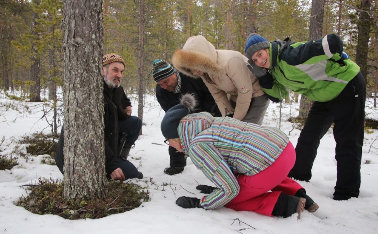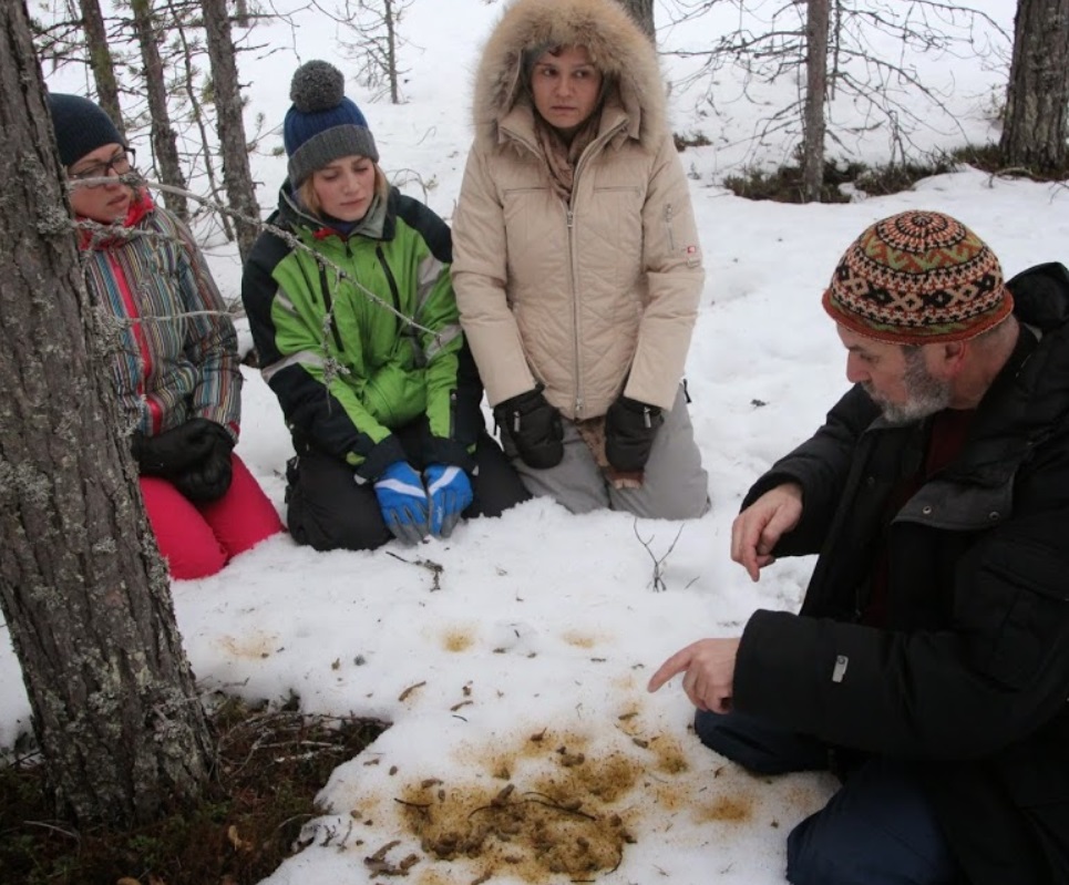 Как оказалось, это были следы жизнедеятельности глухаря. АЕВ искрометно заметил, что в ногах правды нет, и удобно устроился на коленях рядом с глухарем