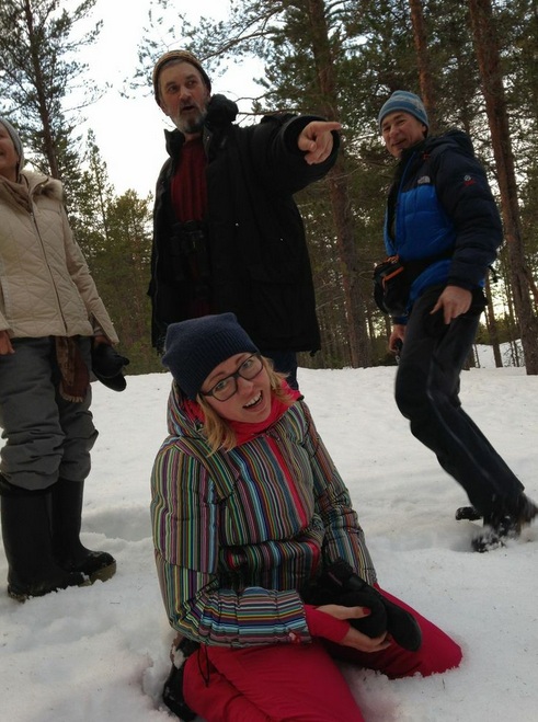 … Андрей отвлекал оставшихся впечатлительных дамочек акробатическими этюдами на фоне очень кстати оказавшихся там же хорошо нам знакомых «следов глухаря»