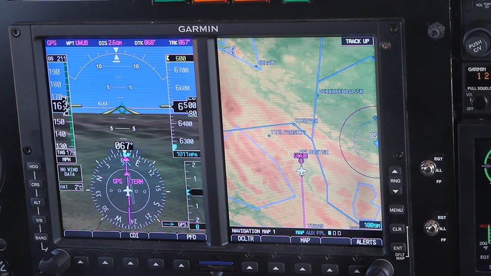И вот мы пересекаем символичную границу путешествий, Урал. Маршрут Стерлитамак - Белорецк - Челябинск мне хорошо знаком и здесь в случае ухудшения погоды я чувствовал бы себя уверенней всего. В Белорецке хоть и заброшенная, но есть полоса и справа по маршруту Магнитогорск тоже может быть хорошим запасным АД. Ветер продолжает нам активно помогать и мы валим со скоростью 210 узлов. Левый концевой бак уже привычно плохо отдает топливо, но его 80 литров нам особых проблем не доставляют на фоне общей нашей заправки 730 литров.
