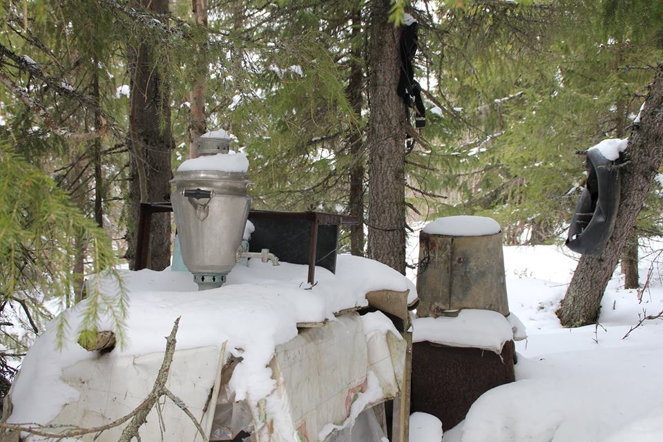 "Накануне еще никто не знал, что завтра снегоходный сезон закончится. А просыпаясь утром и видя в окно дождь, который не перестает, понимаешь, что вчерашняя поездка была посвящена закрытию сезона. Солнце, голубое небо, зимняя дорога и родная вторая бригада впереди. Да еще свежий снег после «телячей пурги» и белым-бело по сторонам. В чуме нас ждут. После пурги под снежными сугробами «где-то возле чума» остались мобильный телефон, обувь, инструмент. Мокудан очень большой, две половинки брезента разошлись, потрепало ветром однако. Чум уже летний был, переодетый, с брезента. Рассказывают, когда проснулись утром в чуме был сугроб, пришлось лопатой выкидывать. С нами кругосветчик-летчик-амереканец с Аляски, товарищ у Влада Выучейского. Он уже побывал на митинге 9 мая, понял что мы едины и сильны, теперь в чуме рассказывает как медведь съел его спальный мешок из оленьих шкур на избушке. Зачем на избушке олений спальник, там же тепло должно быть. Ну ладно, поверим…
