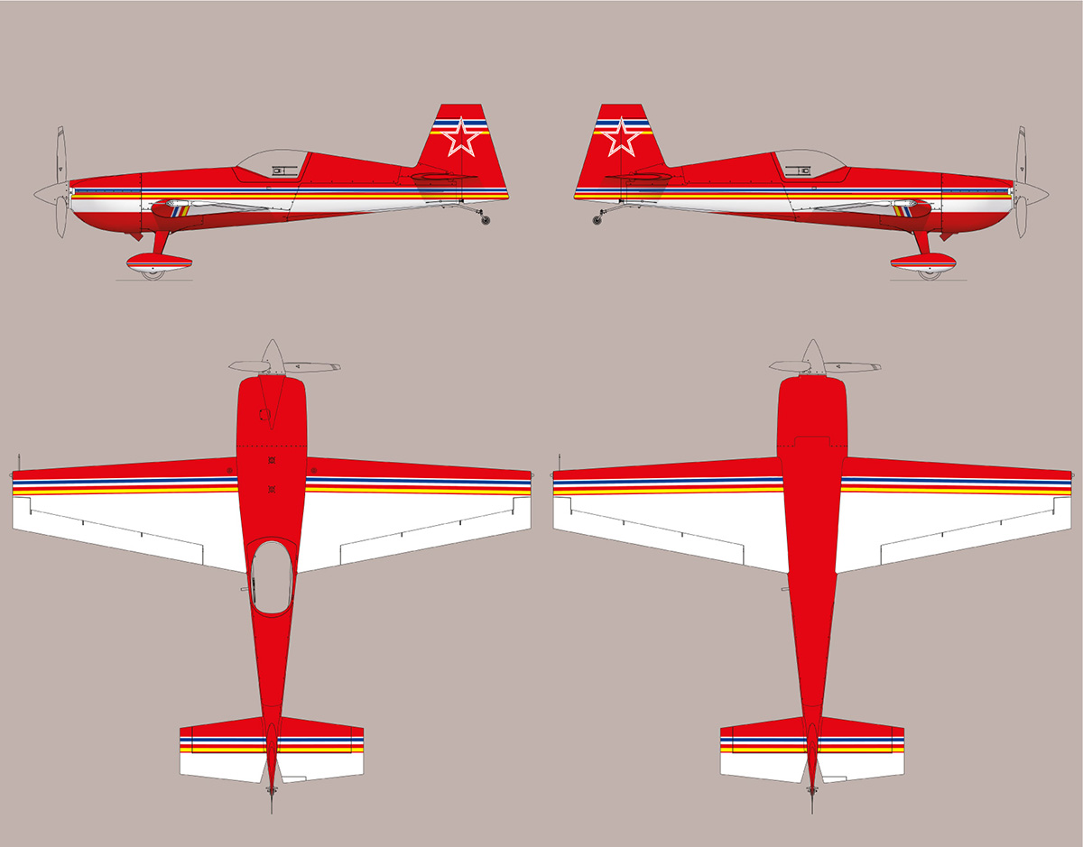 Все сомнения в определении положения самолета в пространстве судьи будут трактовать не в пользу спортсмена. Поэтому схема окраски должна обеспечивать четкое и однозначное восприятие пространственного положения самолета.