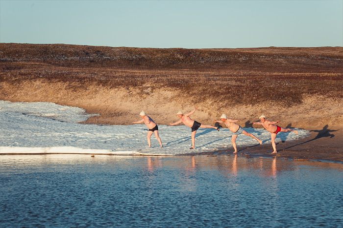 После ужина банька и традиционное купание в озере. В этом году со снежком.