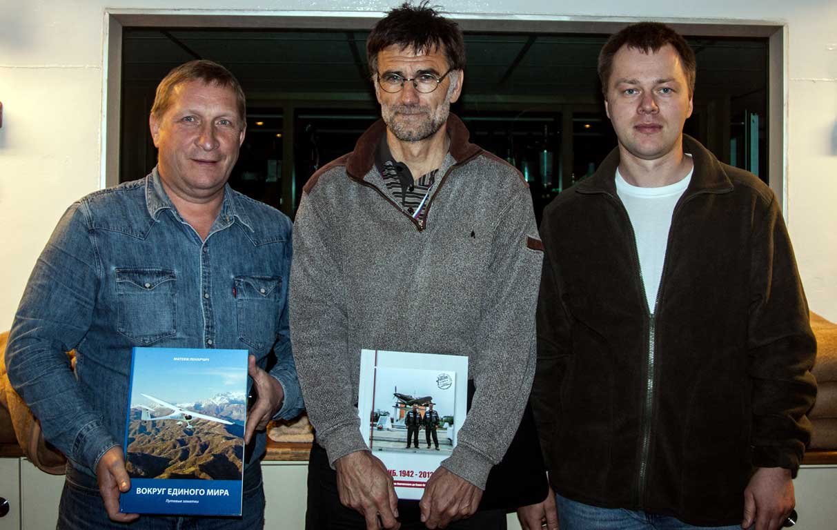 Олег Нехорошев и Андрей Иванов меняются книгами с Матеушем Ленарчичем.