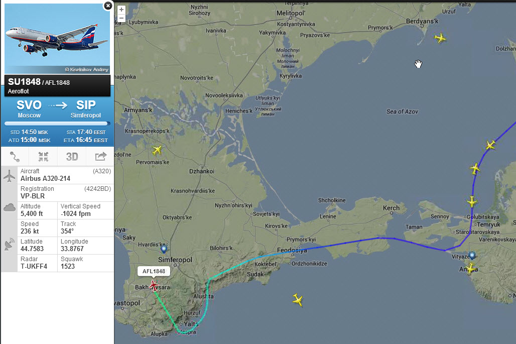 Небо над Крымом стало управляться российскими органами УВД..Минтранс: ICAO оставила воздушную зону над Крымом за Россией