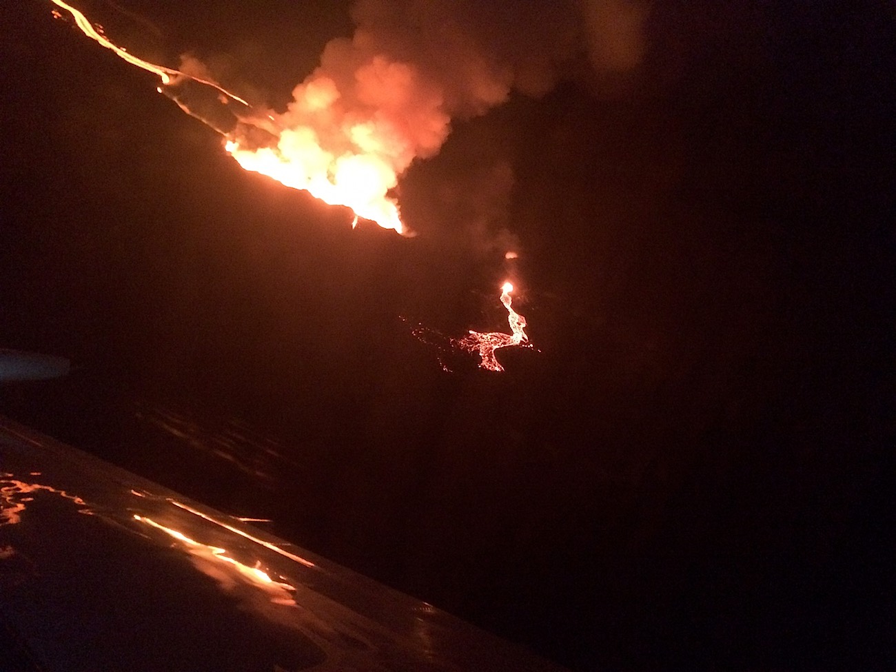 Чем ближе подлетаешь к Америке, тем проще отношение к авиации. Уже в зоне Рейкьявика спрашиваем у диспетчера: "Как погода над вулканом". Диспетчер спрашивает другой борт. Ждем ответа и нам повезло, над вулканом чисто. :mrgreen: Для Исландии, надо сказать, это редкость. Запрашиваем полететь посмотреть на вулкан, тут же получаем ответ в Американском стиле "летаете куда хотите, я за вами слежу на радаре" и летим на зарево. :evil: