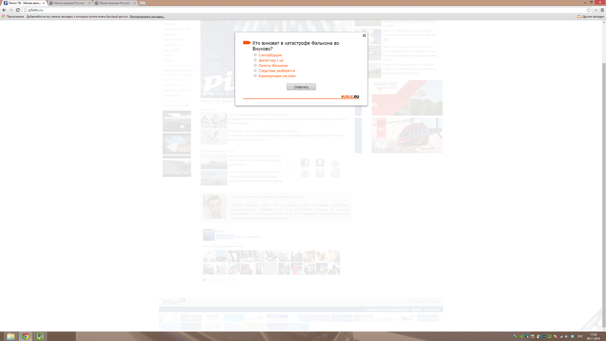 А в фейсбуке как эта тема всем нравится... Вы решили так рейтинги поднять? Так лучше тогда фото с места катастрофы опубликуйте, ваще все зашкалит. Вы хотя бы поняли сами что делаете? Решили провести расследование силами "опытных" авиаторов по материалам лайфньюс?PilotTV писал(а):Мнение услышано, опрос снят сегодня в 8 утра, как пришли на работу. Однако, хочу заметить, что за 2,5 дня, с обеда пятницы, по нему проголосовало 613 человек. У нас за неделю не по каждому опросу такие цифры набираются.