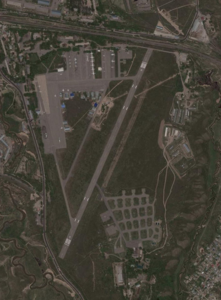 ВПП имеет размеры 1460х34 м. КБП - отсутствуют. Свободных зон с обоими курсами взлета - нет. Географические координаты: N43°21'05'' E076°52'58''. Абсолютная высота аэродрома /Наэр/+ 715.3 м. Магнитное склонение: +4°20. УКВ частота: 118,9 МГц. Позывной: «Переносчик». МК пос: 021° – 201°. Непосредственно у торца ВПП 201° - электрифицированная железная дорога, у торца ВПП 021° - автомобильная дорога, а за ней глубокий овраг.