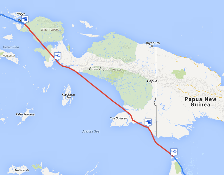 4. побережье самого восточного из островов Mansfield Eilanden (09:01Z) -> Sorong, Dominique Edward Osok Airport, WASS (09:22Z)