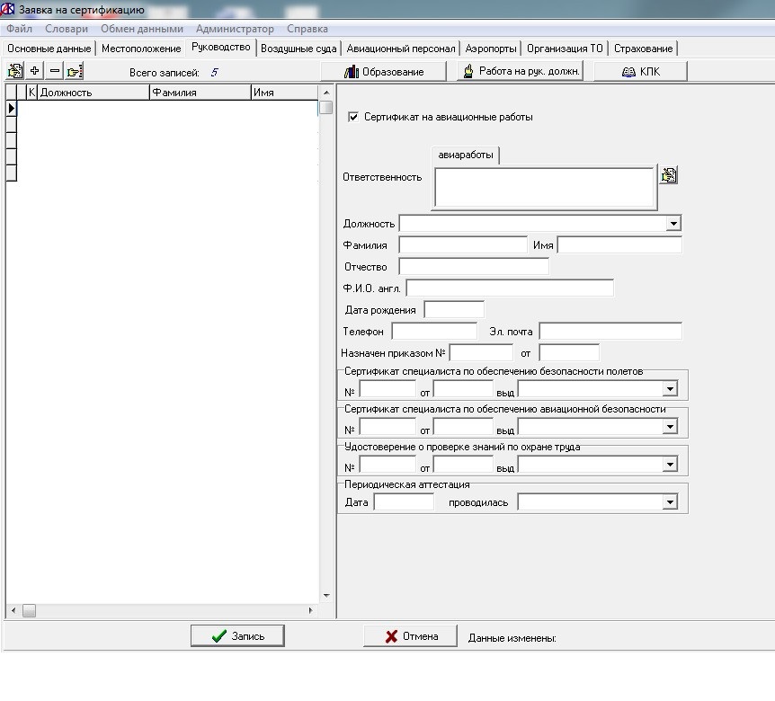 При заполнении заявки на сертификацию эксплуатанта на АР через ИСВТ (информационная система воздушного транспорта - Авиаконсалтинг) необходимо внести во вкладке "Руководство" номера трёх сертификатов: