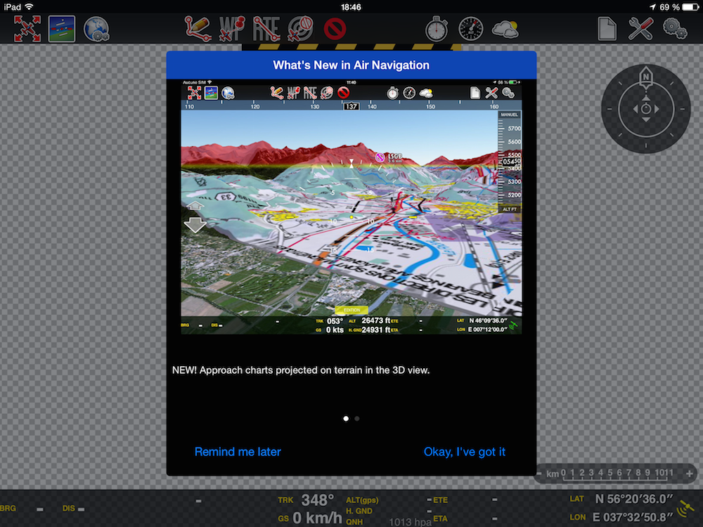 Tomorrow you will receive an e-mail with instructions on how to download the updated version. You will be asked to download an application called ´TestFlight´ and through this application you will be able to install the new version of Air Navigation Pro iOS 5.8. This update will work for thirty days.