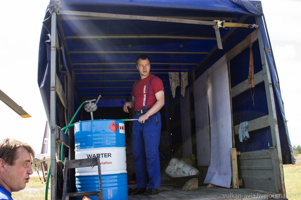 Мы с Андреем вахтовым методом заправляли борт и канистры. Андрей ходил на заправку, а я всяческими способами пытался заговорить ребятишек, только бы отвлечь их внимание от вертолета на максимально долгое время. Получалось плохо. Потом Андрей приносил канистру и вставал с одного борта, а я заправлял бак на другом борту. И так несколько раз. Как я ни пытался рассказать ребятам, что второй вертолёт ещё красивее и лучше, у меня ничего не получилось.