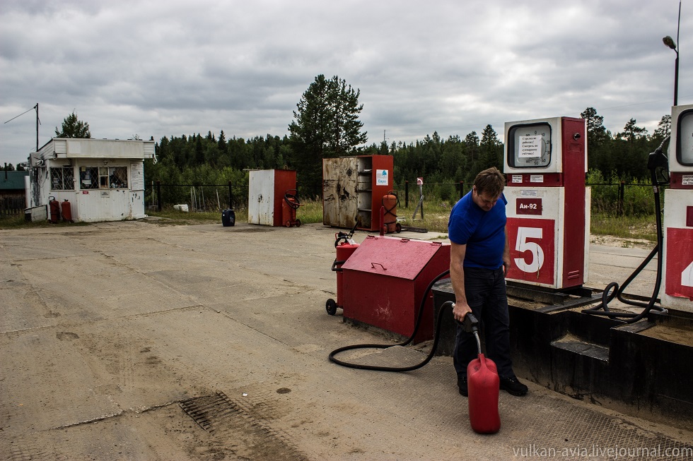 У меня с собой был хороший бочковой насос, и мы управились за полчаса. Далее нас ждал бензин в Сыктывкаре. Но мы с Андрюшей не могли пролететь такое расстояние на баках. Потребовалось перелить запасные канистры и заправить в одну из них автобензина на обычной бензоколонке в какой то деревушке. Удивили люди живущие тут. Уборщица с бензоколонки подбежала и поинтересовалась все ли у нас в порядке и не нужна ли нам помощь. Еще несколько человек предлагали помочь. Было приятно.