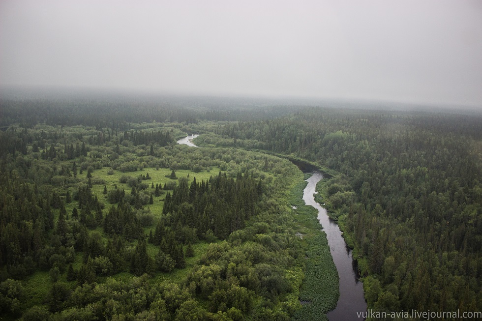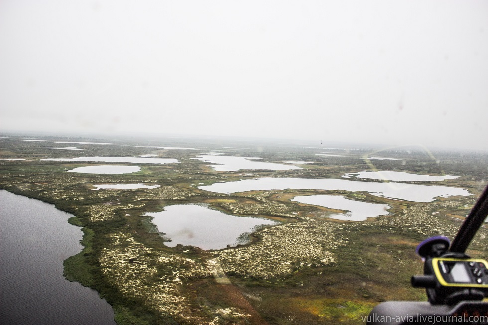 Грибы выше берёз, в речке плещется рыба. Всего полно! Но ловить и собирать совсем нет настроения. Погода лучше не становилась. Мы связались по Inreach ( классная штука!) с улетевшим вертолётом и узнали про погоду там. Мне там ловить нечего. :( скорее назад в Инту! Ну не жить же в тундре! В Инте всё хорошо. Приехал Леонид и опять заправил нас. Только платить было нечем. Кошелёк в другом вертолете. А у нас осталось всё туристическое снаряжение. Кое-как, с помощью "Сбербанк онлайн" нашли выход. Но дальше-то что? Тем временем, второй экипаж благополучно приземлился в Нарьян-Маре, и мы смогли поговорить по телефону. Узнав подробно про погоду на этом участке, мне расхотелось туда лететь. Домой? Да! Просмотрев все погодные радары, мы поняли, что от Сыктывкара до Москвы нам дорога закрыта сильными осадками. Но делать нечего, поехали домой. Подали план до Ухты, дождались нужного статуса и полетели. Прекрасная погода!!! Не верилось что дальше нас ждёт жуть. Приземлились в аэропорту Ухты и сразу позвонили в Сыктывкар Сергею. Сергей очень быстро умерил мою прыть фактической погодой. К вечеру вся эта дрянь доберётся и до Ухты. Ещё раз просмотрев все прогнозы, я грустно побрёл договариваться о базировании на два- три дня. Очень не хотелось оставаться в Ухте на такой большой срок. И тут, я заметил на табло вылета-прилёта информацию о Московском рейсе. Бегом в кассу! Есть два билета на Москву! Вылет Як-42 через пару часов. Я уладил все бумажные вопросы, связанные с оставлением вертолета на перроне аэропорта Ухты, мы заправили борт и зашвартовали лопасти. Ужинал дома в Москве вместе с семьёй. Хорошее получилось путешествие. Но кусочек меня остался в Ухте под дождём и ветром.