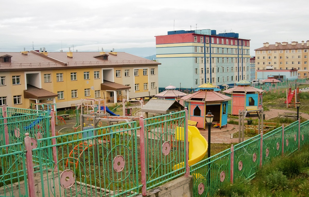 Все дома на вечной мерзлоте стоят на сваях. Т.е. под домом можно пройти насквозь. А сразу и не понять.