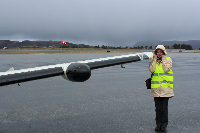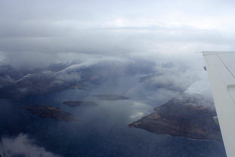 Еще через полчаса начали снижение. Заходили по ILS, полоса 25. Экипаж ощутимо напрягся: облака были неприятные, ледяные. Автоматический информатор ATIS давал температуру у земли +3С, рваный ветер и нижний край облачности 500 футов, при том, что это фьорды, пики гор достигают 3000 футов, и они в облаках. Мы, помятуя, как на Ацтеке ловили лед в +8С, внимательно следили за лобиками крыльев. Реальность оказалась намного приятнее ожиданий. Нас отвекторили, из облаков вынырнули где-то на 800 футах, льда налипло немного и он быстро стаял. А когда открылась земля, я аж подпрыгнула в кресле - я еще не видела гор из самолета так близко – почти за законцовкой крыла, только руку протяни!