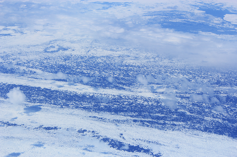 - Это, когда погода рисует. Самый совершенный в мире художник, кстати. Чем ближе к Канаде, тем больше льда. У континента вода окончательно скрылась под голубой коркой ледяных полей, и мы, наконец, получили пищу для сравнения с предыдущей картинкой. Все-таки это была вода. Радио несколько раз пыталось нам выдать резервную КВ-частоту, и Илье приходилось объяснять, что КВ у нас нет. Выше 250 эшелона на этой трассе по правилам оно не требуется, а мы на 280-ом. Четвертый час в воздухе за этот полет. Восьмой, если считать с утра. Снижаемся к Гусбэю.