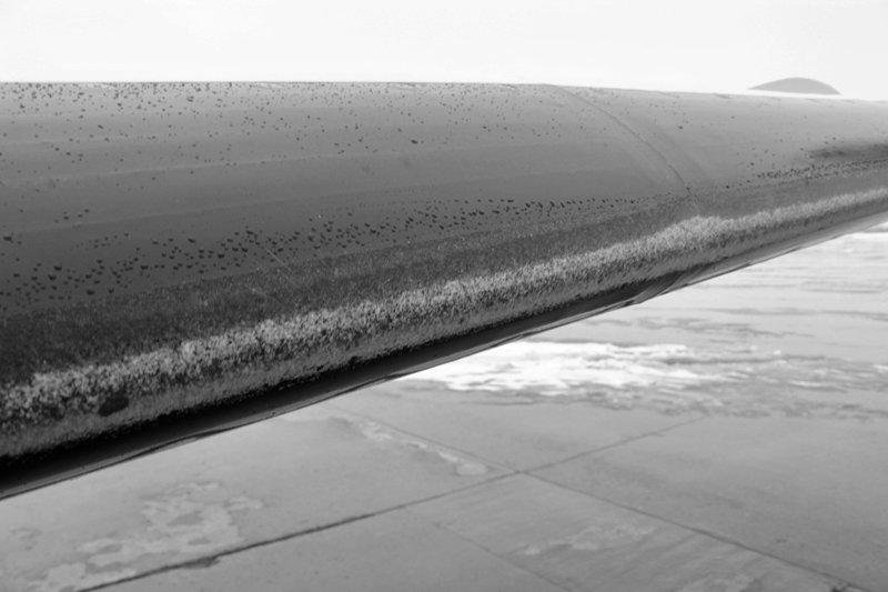 Снижаемся в облака. По черным лобикам крыльев начинает разрастаться белая полоска, постепенно охватывая блестящей паутиной всю переднюю часть крыла. Обледенение. У нас на крыльях установлены пневматические подушки, сбрасывающие лед, но в их использовании есть хитрость: пока лед тонкий и небольшой, задействовать их бессмысленно. Нужно дождаться, пока нарастет плотная корочка льда, чтобы резко надувшаяся подушка могла сбросить ее рывком. Но ждать слишком долго тоже нельзя, потому что льда может оказаться слишком много, и подушка уже не сможет его скинуть. Вот и ловишь момент. Летим в молоке – 1000 футов, 700, 500. В какой-то момент почти под крылом начинают проглядывать верхушки елок, снова пропадают, и снова появляются. 400 футов – летим над лесом, так низко, что можно разглядеть отдельные веточки прямо под собой, вперед видимости еще нет. Сбрасываем лед с плоскостей. 300 футов - лес заканчивается и перед нами в дымке открывается поле с серой полосой асфальта. Мелкий моросящий дождь бьет по стеклу.