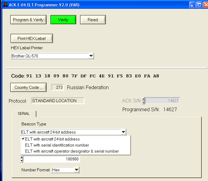 Для получения официального документа с выделенным 24 битовым адресом пишется запрос в Росавиацию. Морсвязьспутник не спрашивает владельца каким способом он получил этот номер и запрограммированный таким протоколом маяк можно зарегистрировать. Но в случае расследования могут поинтересоваться откуда появился такой номер. По этой причине каждый выбирает свой путь.