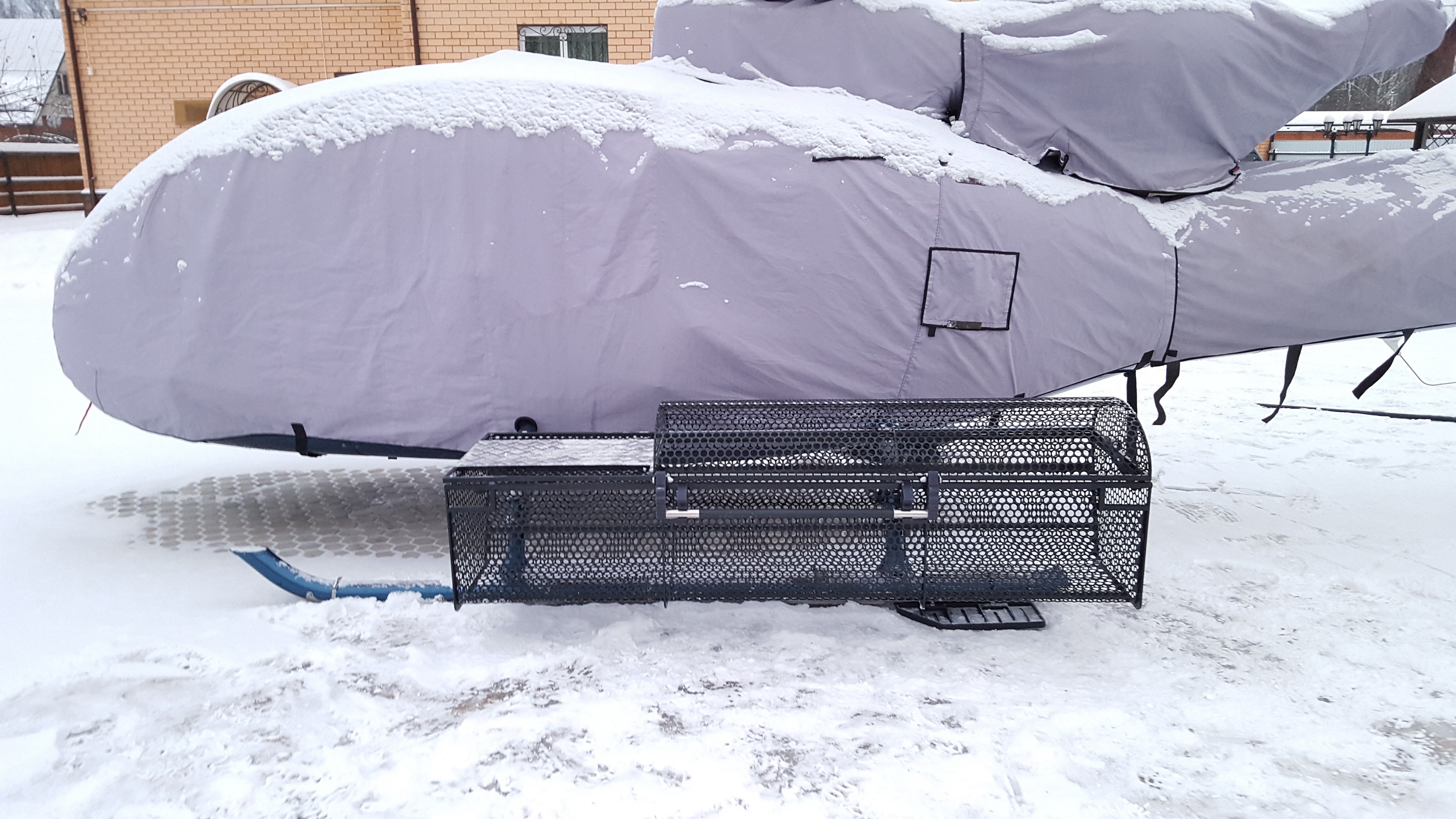 С помощью "золотых рук" Дмитрия (ЭксклюзивХелиБаскетт) оснастил свою машину и корзиной и лапками-снегоступами, причем ставил задачу сделать максимально простую и прочную конструкцию, которая бы выдерживала 150кг. Задача даже перевыполнена; я на это корзине прыгаю, когда она закреплена на вертолете - даже не шевелится. С учетом предусмотренных ручек данная корзина ставится и снимается одним человеком ровно за 47 секунд с учетом развинчивания 2-ух фиксирующий болтов. Также сделали с ним лапки, так как предлагаемые цены у народа на мой взгляд - конские.