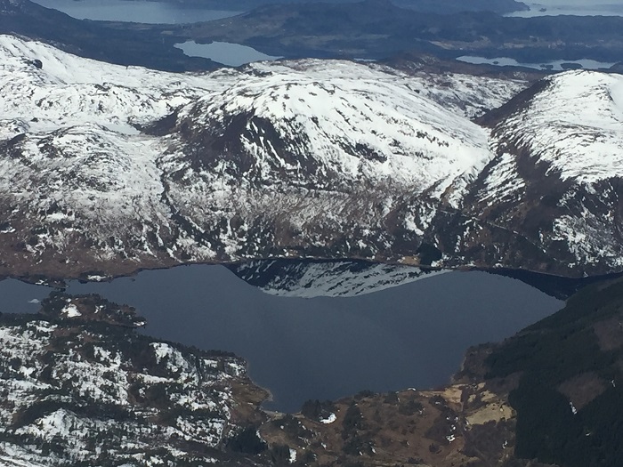 Летим дальше, наблюдаем, как снижается рельеф, как замерзшие белые озера меняются на оттаявшие пронзительно-синие. Невероятно. Невыразимо. Прямо как Архыз. Но это Норвегия!