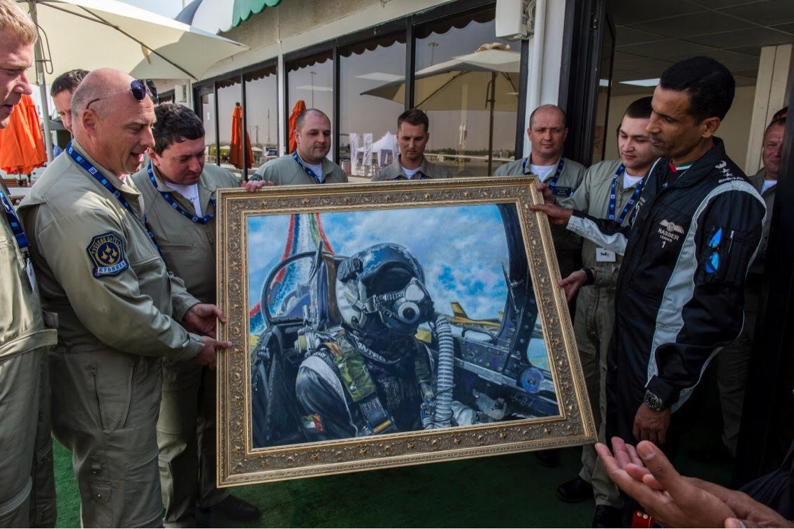 Речь командира "Русских Витязей" на вручении моей картины пилотажной группе "Al Fursan". Dubai Internationai Air Show 2017.