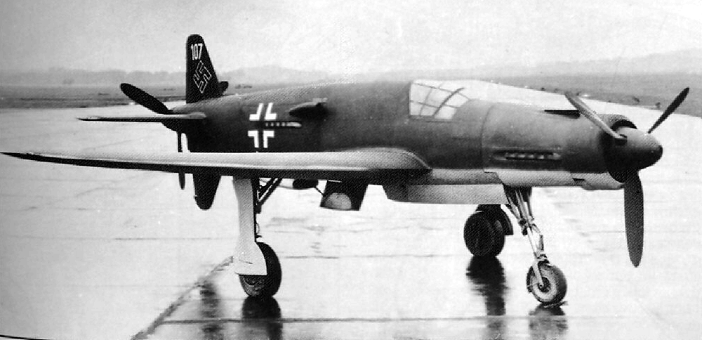 Ну и самый известный, хоть и очень редкий самолёт Дорнье военного времени - несомненно необычный Do-335 Pfeil (Пфайль - стрела). Он должен был сыграть роль скоростного тяжелого истребителя для борьбы с "летающими крепостями" союзников и одновременно скоростного бомбардировщика, но конечно не успел. Тем не менее его можно встретить не только во всех книгах, но также в играх и прочей альтернативщине